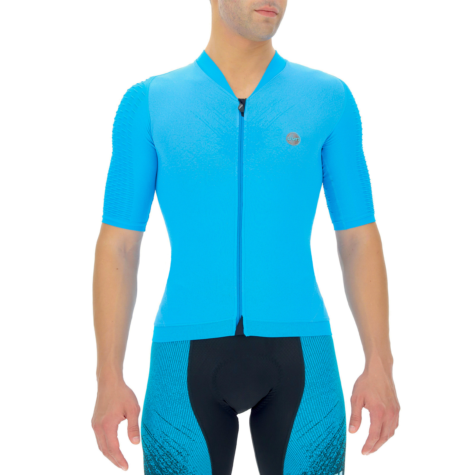 Koszulka UYN Airwing symbolizuje szczyt lekkości i aerodynamiki. Analizując oddziaływanie przepływu powietrza na ciało jeźdźca, przeprojektowaliśmy obszar ramion, integrując nasz renomowany system Hypermotion2 z innowacyjną technologią Haloflex. Obszar ten wykonany jest z jednego fragmentu materiału i wyposażony w trójwymiarowe wgłębienia, które zwiększają współczynnik aerodynamiczny, poprawiają elastyczność oraz wspomagają cyrkulację powietrza pomiędzy tkaniną a skórą. Tył koszulki również przeszedł długi proces rozwoju, co zaowocowało wprowadzeniem panelu z mikroperforowanej tkaniny, zapewniającej oddychalność oraz przekształceniem obszaru kieszeni w celu zapewnienia większej stabilności i ergonomiczności. Lekkość, aerodynamiczny, nieuciskający krój oraz skrupulatna dbałość o każdy detal sprawiają, że koszulka Airwing stanowi idealnego sprzymierzeńca, zapewniając doskonałą wydajność nawet w wysokich temperaturach.