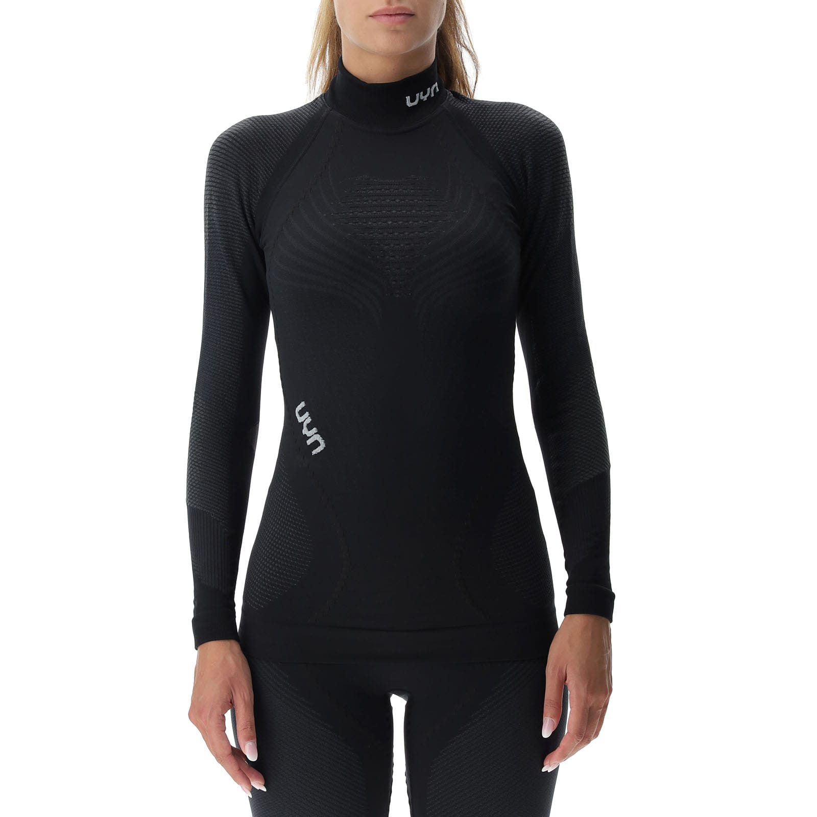 Koszulka termoaktywna dla kobiet UYN Ambityon Long Sleeve z długim rękawem i stójką w kolorze czarnym to połączenie technologii, sportowego stylu i wysokiego komfortu. Wykonana z materiału Natex, 100% organicznego włókna, jest wyjątkowo miękka w dotyku i szybko schnie, zapewniając uczucie suchości przez cały dzień. Dzięki technologii Coolvent, która tworzy trójwymiarowe kanały do optymalnej cyrkulacji powietrza, koszulka skutecznie absorbuje pot i utrzymuje skórę suchą, zapewniając komfort podczas intensywnych aktywności.